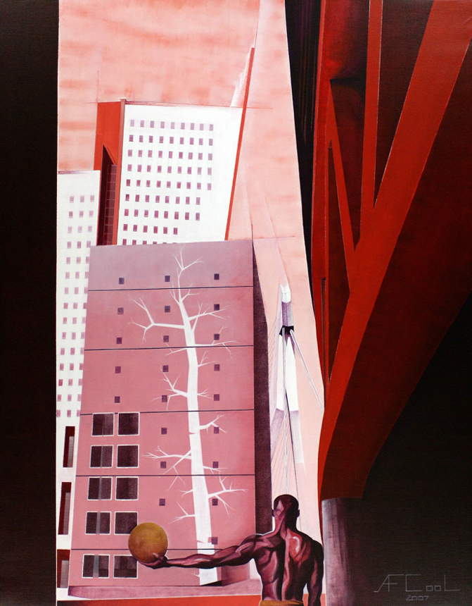 Sa peinture, souvent caractérisée par des surfaces lisses et des lignes structurées, met en scène des environnements architecturaux et des figures humaines dans des compositions soigneusement pensées.
